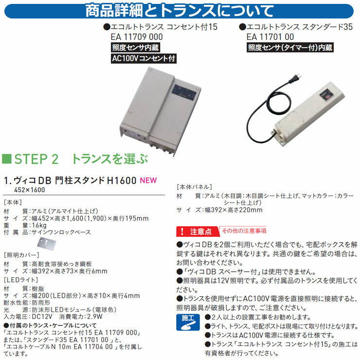 郵便ポスト 宅配ボックス 専用スタンド ヴィコDB 門柱スタンド H1600 トランス:コンセント付15EA ユニソン VicoDB