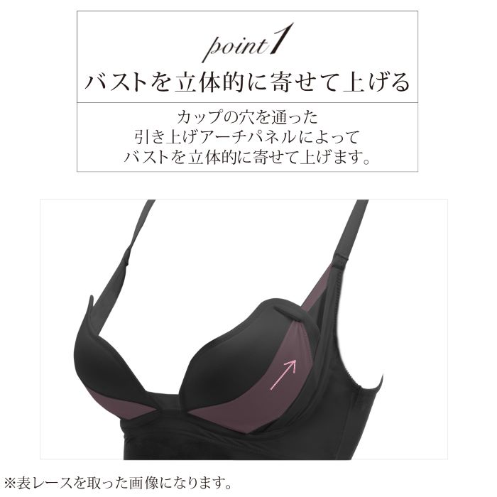 アンダー・サイド・カップ上辺の3方向から引き上げる“引き上げアーチパネル”をカップの穴に通すことで、さらにバストを持ち上げます。
