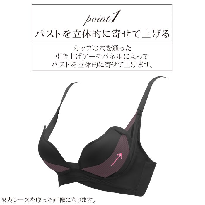 アンダー・サイド・カップ上辺の3方向から引き上げる“引き上げアーチパネル”をカップの穴に通すことで、さらにバストを持ち上げます。