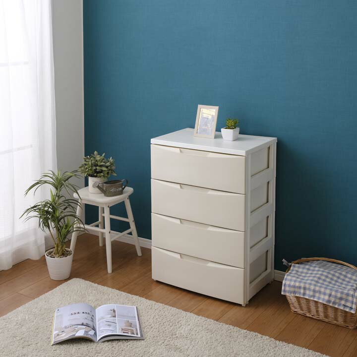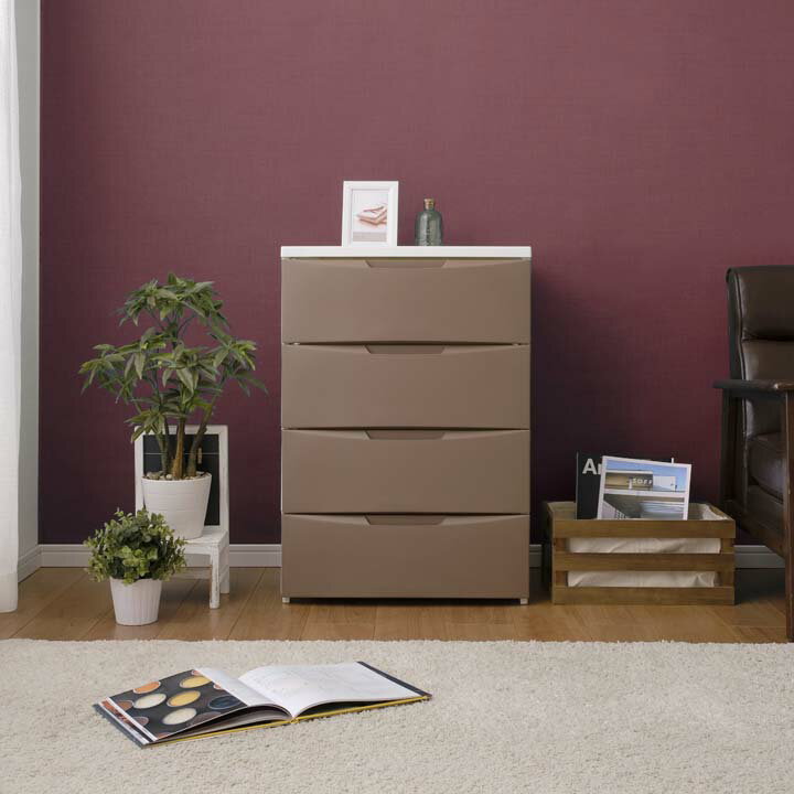 お部屋全体のカラーコーディネートが楽しめるおしゃれな4段タイプのチェストです。
